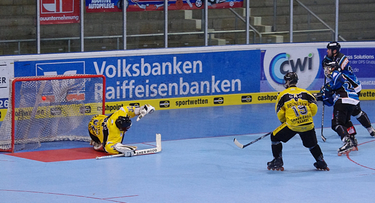Am Ende war der Sieg hoch verdient, doch in der Anfangsphase taten sich die Wölfe schwer. Die Gäste, die nur mit zweieinhalb Reihen angetreten waren, igelten sich hinten ein, standen gut in der Defensive, fuhren zwischendurch Konter, von denen auch einer mit dem 1:0 in der fünften Minute belohnt wurde, und hatten im Tor mit Malte Rütten einen überragenden Mann, der sie lange im Spiel hielt. Reihenweise liefen die Attinger an und scheiterten immer wieder an Rütten, der seine Hände überall zu haben schien und in der 15. Minute gegen Thomas Bauer sogar mit einer „Hasek-Rolle“ parierte.