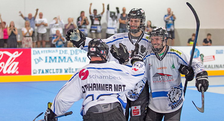 Erneut war es dann Führungsspieler Rothhammer, der mit seinen beiden Treffern (53./54.) in einem spannenden und umkämpften Schlussdrittel für die Wölfe alles klar machte. Zwar kam Spaichingen aufgrund eines abgefälschten Schusses noch mal heran, zielte dann aber in den letzten beiden Minuten bei fünf gegen drei zu ungenau, so dass es beim 6:4 blieb. Weiter geht es für die Wölfe am 24. und 25. August in Kassel und Langenfeld.