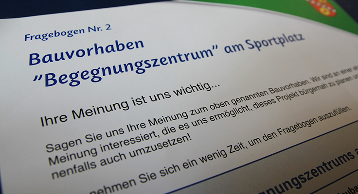 Die Gemeinde führt derzeit eine Umfrage zum geplanten Begegnungszentrum durch. Die Vorstandschaft bittet um rege Teilnahme, sie kann entscheidend für den Bau sein.